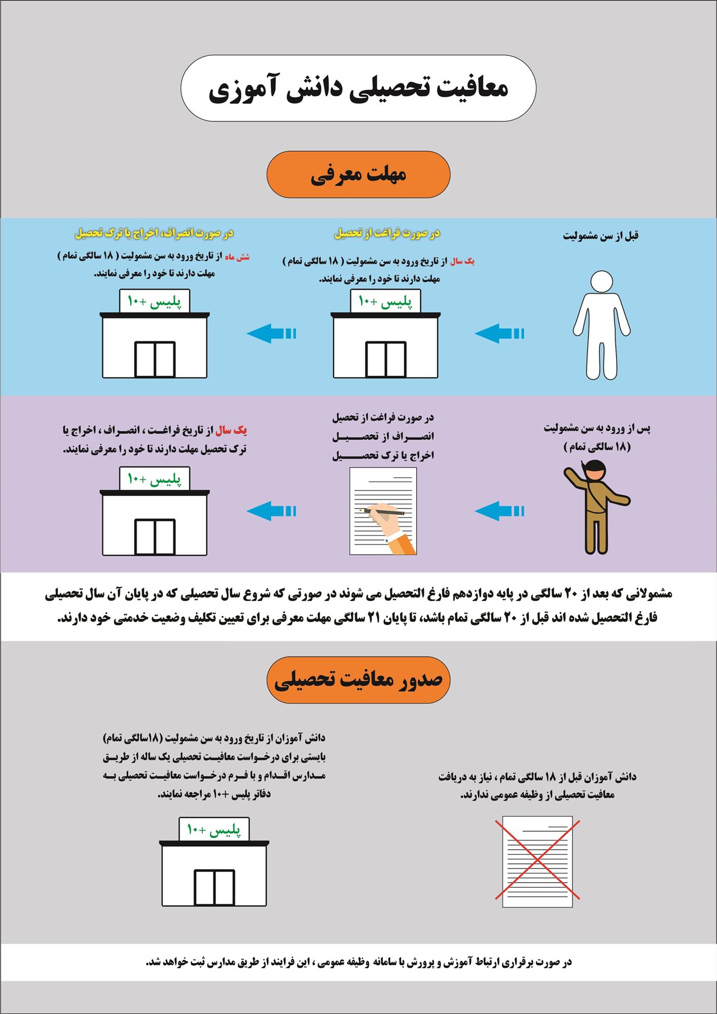 تصویر آموزشی برای آشنایی با معافیت تحصیلی مشمولین از خدمت نظام وظیفه ( سربازی )