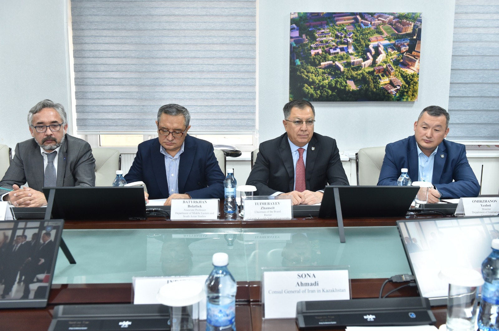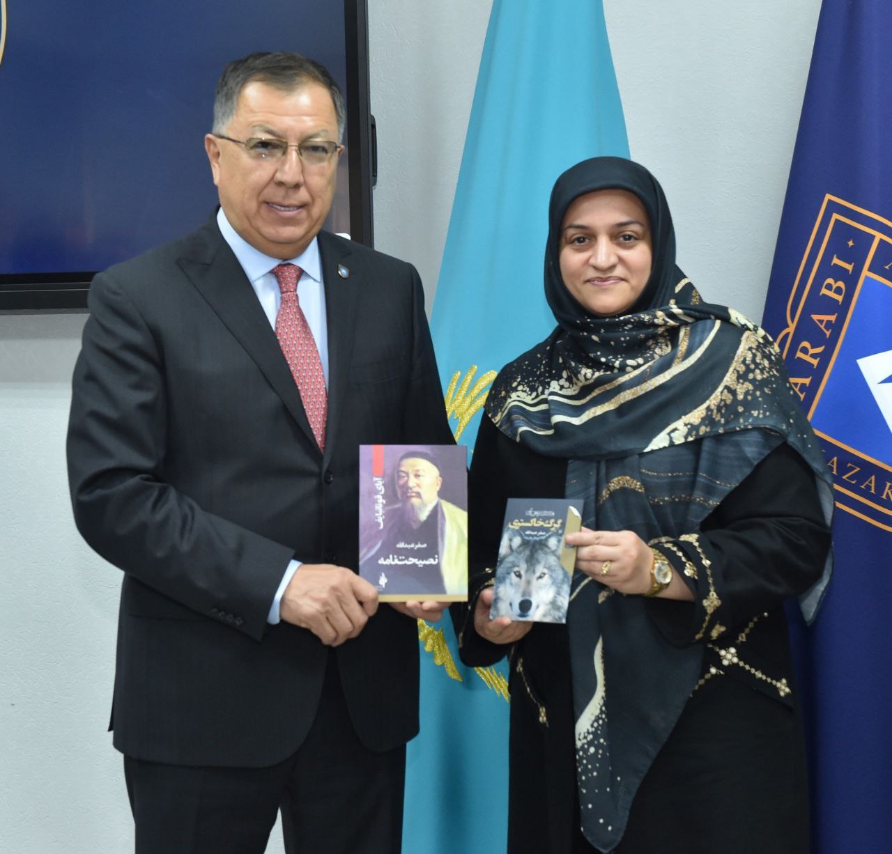 ۲۳ مهر ۱۴۰۴، سرکار خانم سونا احمدی، سرکنسول محترم کشورمان در آلماتی، با حضور در دانشگاه فارابی با آقای جان سعید تومیای، رئیس دانشگاه، ملاقات کرد