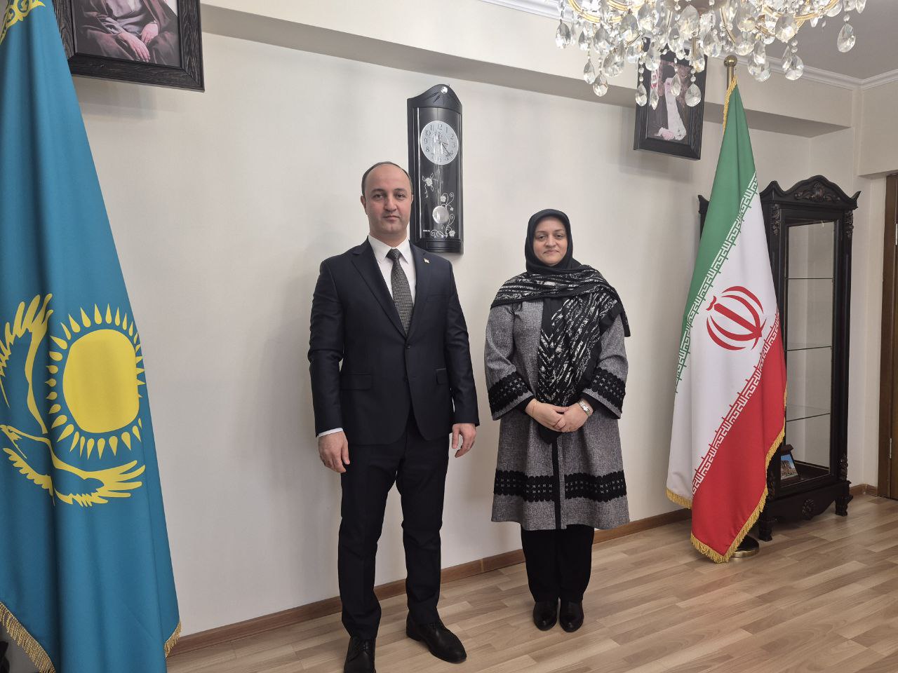 جناب آقای فیروز مرادزاده، سرکنسول جمهوری تاجیکستان، روز ۱۴٠۴/۱۱/۱۷ با خانم سونا احمدی سرکنسول ایران در آلماتی ملاقات نمود
